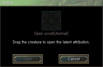 2. Prepare [Open Scroll] item of same type with latent creature what you have on no.1, and double-click it.