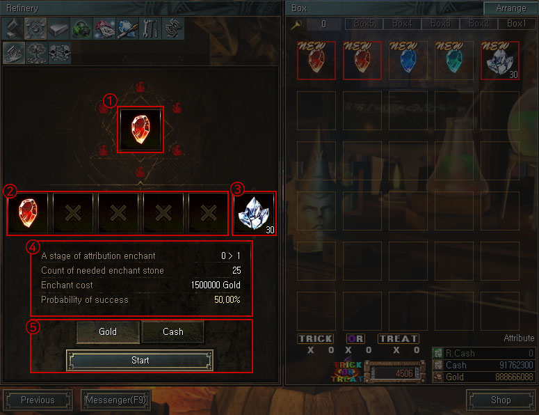 5) Enchant will be proceeded when you click [START] after selecting required money(currency) for attribute enchant try.